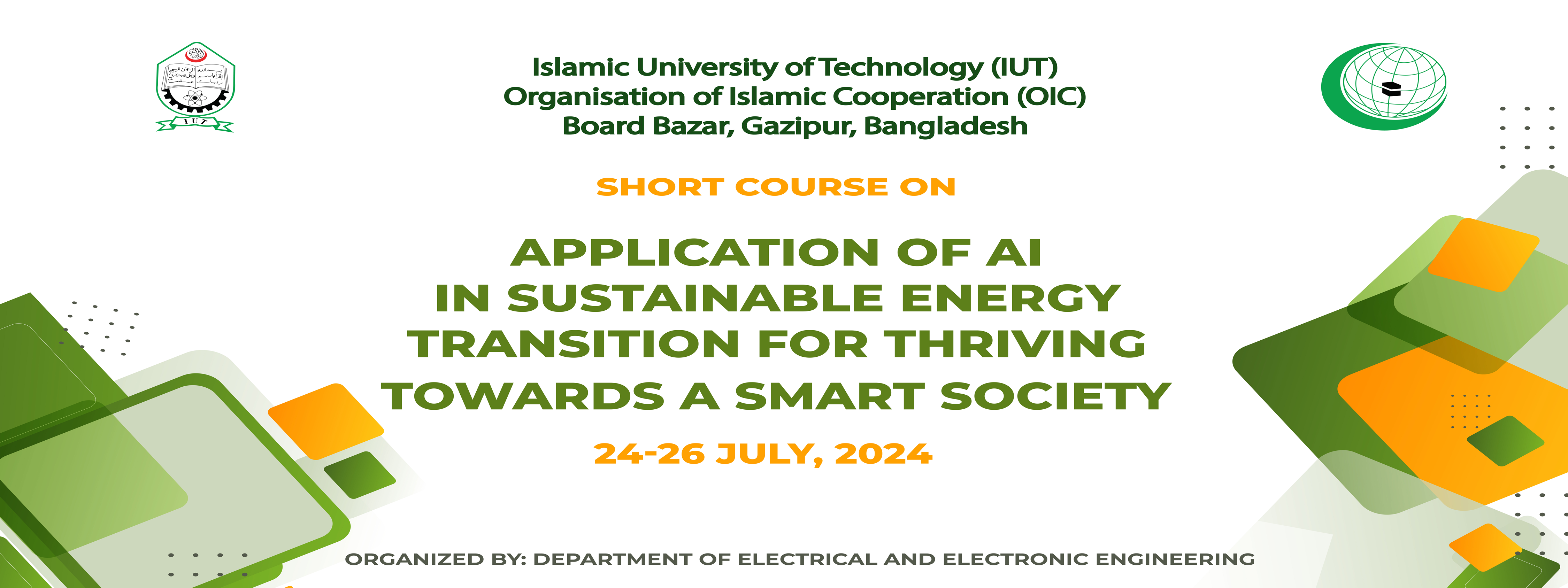 The Department of Electrical and Electronic Engineering (EEE) of IUT organized a 3-day long short course on "Application of AI in Sustainable Energy Transition for Thriving Towards a Smart Society" from July 24 - 26, 2024. More than 30 participants from Bangladesh and abroad attended the short course.